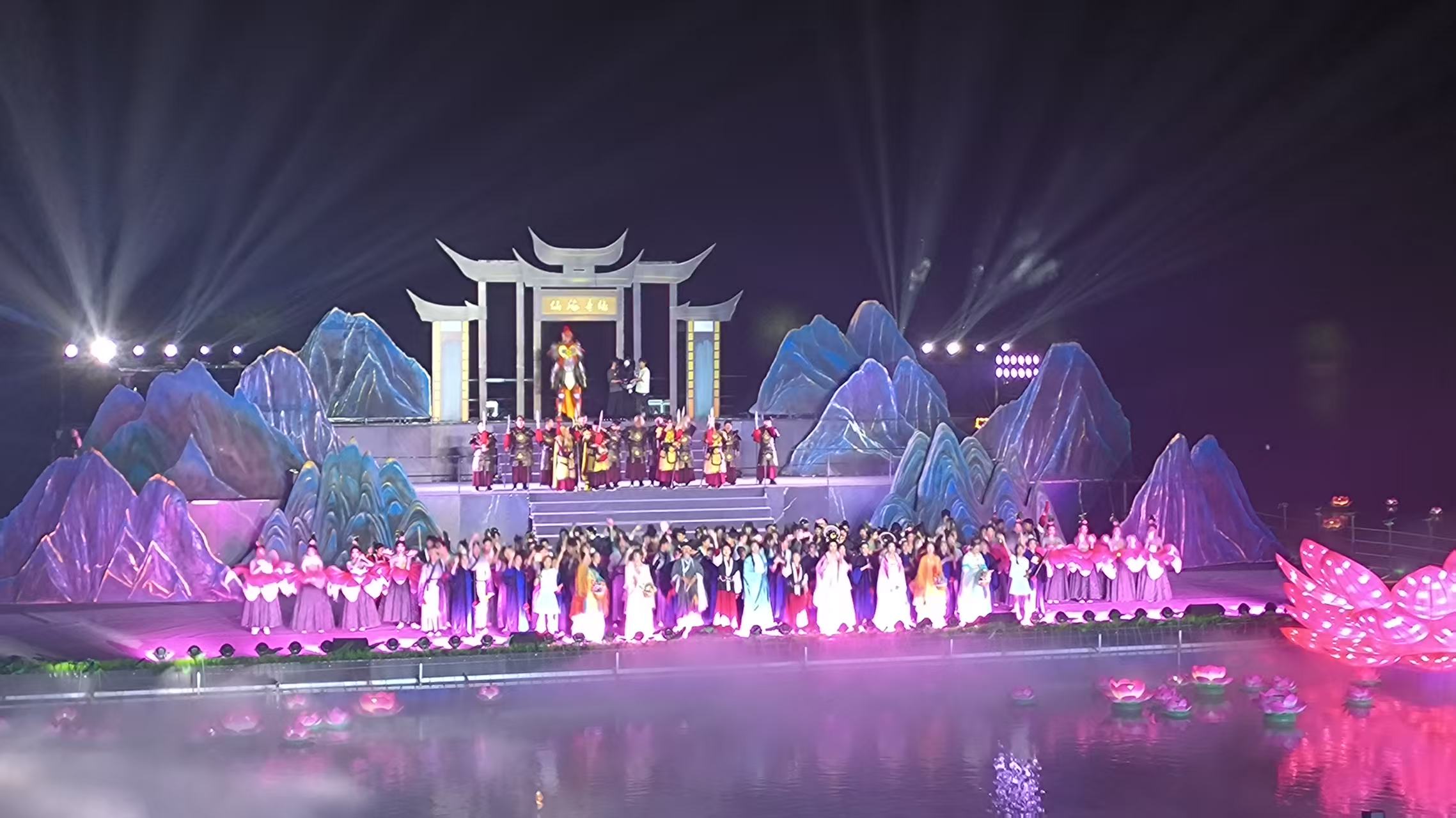 那个五一我们去看了仙海奇缘实景剧,在灯光的照耀下,你的侧脸特别美。